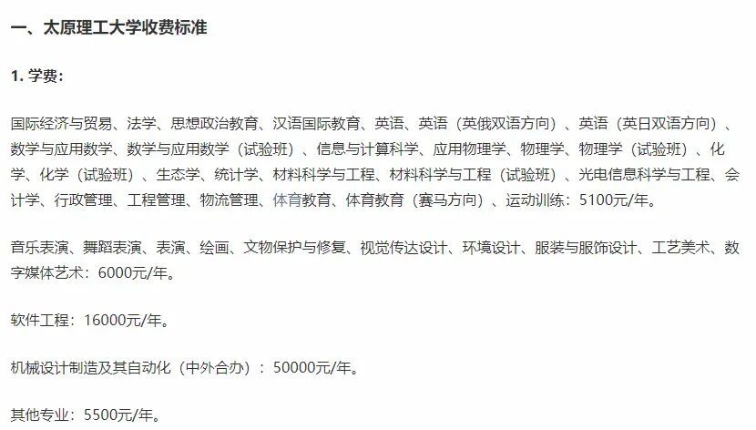 太原理工大学收费标准